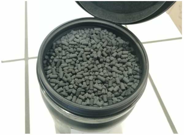 根據直接使用瓶裝真實氣體所獲得的結果,包括列出的催化劑毒物,這會導致催化劑快速降解,因此在第一個反應器的上游安裝了活性炭過濾器。為此,將金屬氧化物浸漬的活性炭顆粒添加到氣體混合站。這些顆粒專門開發用于從缺氧氣流(例如CO2、N2、CO和H2)中去除硫化氫、有機硫醇、二氧化硫、硫化羰和氮氧化物。它們的銅含量為7%(以CuO計),直徑為3mm,長度為7mm(圖3)。將總共​​約300毫升的這些顆粒活性炭加入氣體混合站。
