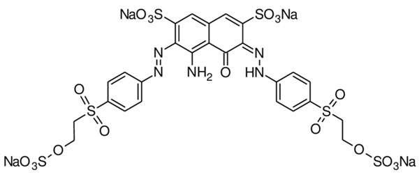 活性黑5是一種常用的陰離子偶氮染料(C26H21N5Na4O19S6,分子量:991.82g/mol)(圖1);钚匀玖夏軌蚺c所應用的纖維發生化學鍵合,形成共價鍵。它們廣泛用于紡織行業,為棉和人造絲等纖維素纖維染色。染色和紡織品生產等工業過程中合成偶氮染料的存在對水資源構成重大威脅,因為它們會在水生環境中長期存在,并可能具有誘變和致癌作用。這些染料是一種危險品,會對環境造成嚴重威脅。
