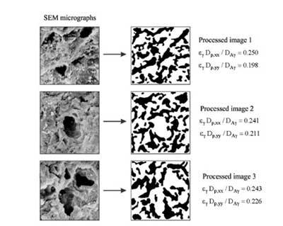 在這篇內(nèi)容中,從放大過程的角度研究了吡啶在活性炭上的吸附問題,并確定了相應(yīng)的有效輸運(yùn)性質(zhì)。通過體積平均方法研究微觀尺度上的現(xiàn)象。因此,宏觀上的控制方程被獲得,以有效性質(zhì)表示。這些方程被用來解釋實(shí)驗(yàn)數(shù)據(jù)和預(yù)測(cè)孔隙和表面有效擴(kuò)散率。為此,假設(shè)微觀結(jié)構(gòu)具有簡(jiǎn)單的幾何形狀(圓柱體和球體的有序介質(zhì))或者從SEM(掃描電子顯微鏡)顯微照片處理的圖像獲得。此外,作為粗略估計(jì),報(bào)道了點(diǎn)表面擴(kuò)散率。