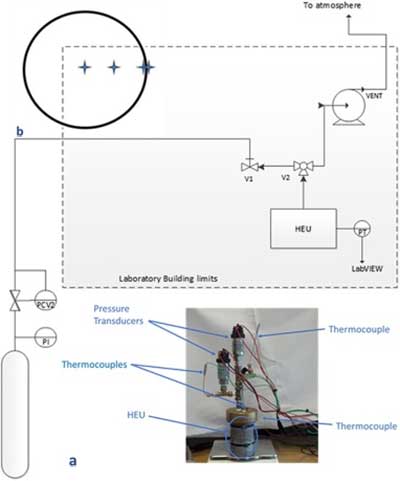 使用設計為模擬自冷卻罐的換熱機組(HEU)為200mL容積的圓柱形容器進行實驗。該設備在圖1中示意性地示出; 參見圖1a中的照片。換熱機組(HEU)的主體由鋁制成,并用黃銅蓋封閉。水浴也是實驗裝置的一部分。