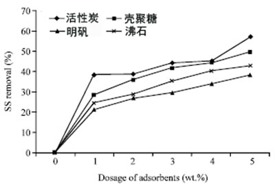 圖2:懸浮固體去除百分比與活性炭劑量的關(guān)系。