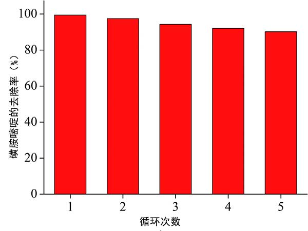 圖3:乙酸溶液用于去除磺胺嘧啶的可重復使用性。