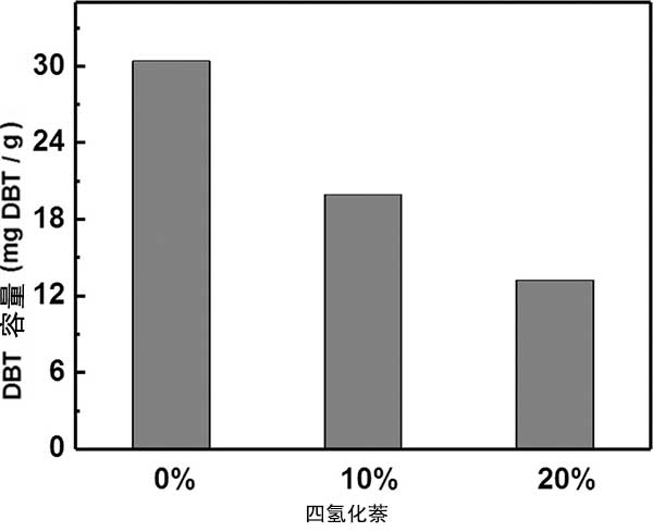 圖4.在具有不同質量分數的四氫化萘存在下活性炭對DBT的吸附容量。