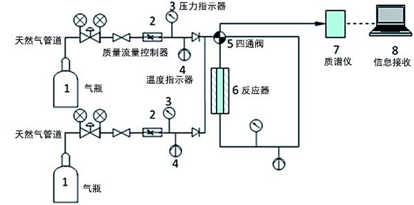 在我們之前的工作中開發了吸附裝置來測量氣體穿透曲線(圖1)。它由三個主要部分組成:準備部分、吸附段和分析部分。在氣體制備部分中,吹掃氣體是高純度Ar氣體(99.999%),其用于在引入烴氣體之前通過惰性氣體管線和反應器吹掃系統。吸附部分使用丙烷或乙烷在氦氣或人造氣體混合物,其通過燃料氣體管線和反應器。這兩條線都碰到了一個四端口交叉閥。整個裝置等溫(~26℃)。閥門位置,氣體流量,壓力和溫度完全自動化,并由內部程序控制。通過質譜儀分析和量化來自反應器出口的氣體。