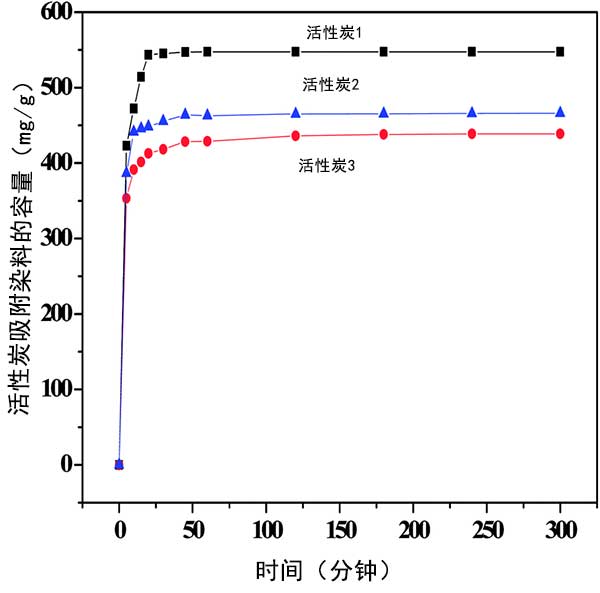 活性炭的基本制造方法:幾種不同的煤在緩慢加熱中預碳化30分鐘。將得到的炭稱重,然后在磁力攪拌下與活化液混合2小時,然后干燥12小時。最后,將得到的粉末在室溫下用熱氮氣沖擊2小時。得到的活性炭用去離子水洗滌直至濾液達到中性。將剩余的固體在干燥5小時獲得活性炭成品。三種煤質活性炭分別命名為活性炭1、2、3。