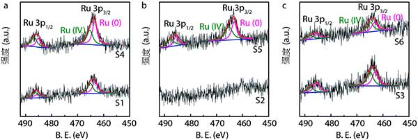圖3:活性炭催化劑的高分辨率XPS光譜,分析氧化態和釕的原子比。