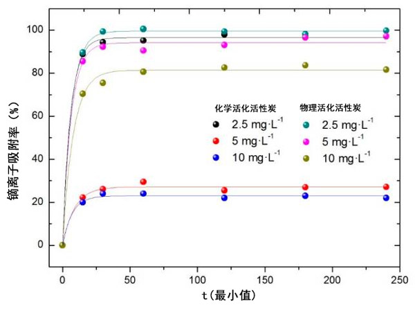 吸附實驗表明,溶液pH的變化對活性炭的吸附有很大影響,在pH為4時獲得較大的吸附。如預期的那樣,溶液鏑濃度的降低會增加吸附百分比。另外,在化學活性炭的情況下,鏑吸收量隨著吸附劑量的增加而逐漸增加。在物理活性炭的情況下,沒有觀察到這種效果,其中除了使用的最低量外,吸附百分比實際上保持恒定。最后,溫度的變化稍微改善了吸附過程。盡管如此,物理活性炭在所有情況下都表現出很強的吸附能力。