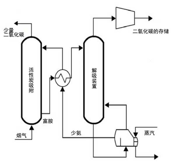 圖2:用于吸附二氧化碳的單乙醇胺吸收方法圖。